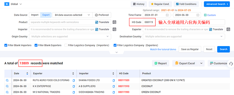 在PA真人视讯海关数据查询平台中,输入准确的HS Code。如果你不确定要开发的国家,可以使用前6位海关编码进行搜索。前6位编码在全球范围内统一,可以帮助你找到更多的潜在客户。